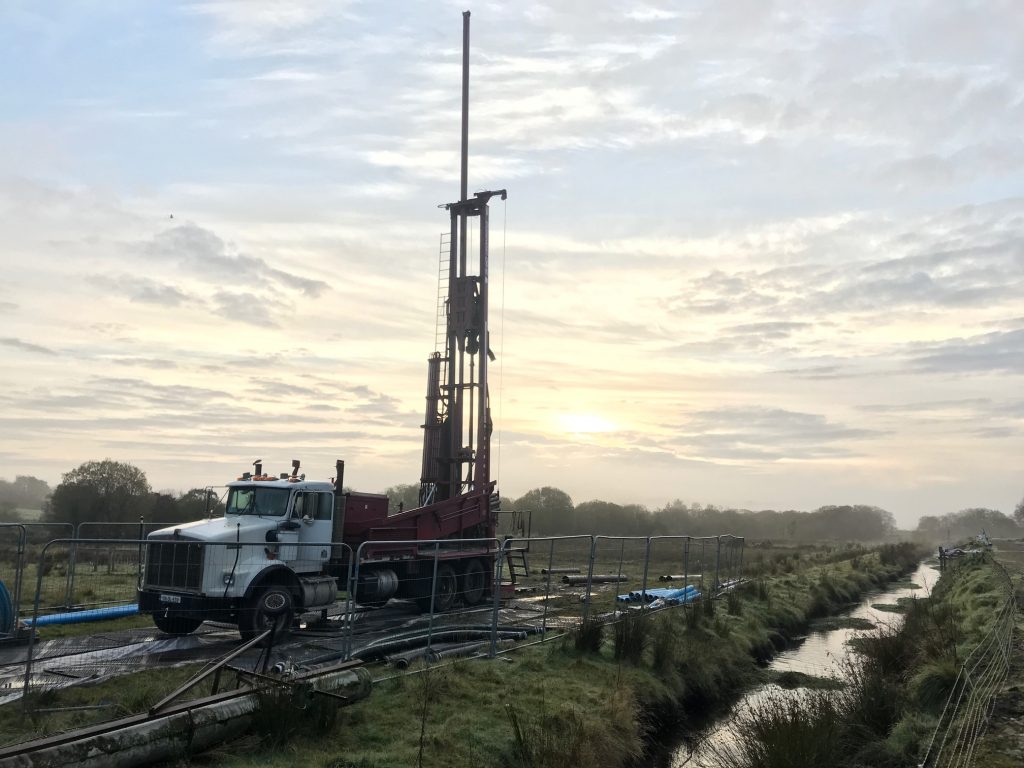 Drilling of two Groundwater Monitoring Stations started in the Derg catchment recently, with the first site now completed. Two boreholes were achieved capturing water entering at the rock interface and at a depth of 30m in bedrock. As on the first occasion, broken rock full of silt was encountered, matching very well with the geophysics,